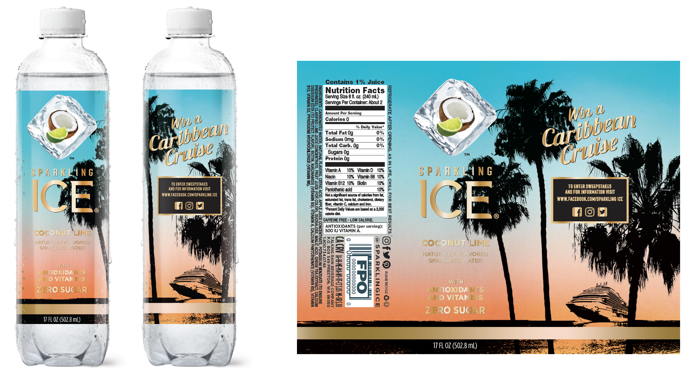 Marketing decided to launch a limited time summer flavor with a sweepstakes offer: Coconut Lime and the chance to win a tropical Cruise. I created a few tropics-themed concepts focused on upscale production methods that create dimensionality and visual interest on shelf. As the Design Lead, I also art directed other designers in the refining of their concepts and created the pitch deck featuring all concepts which were presented to Marketing by our CD.